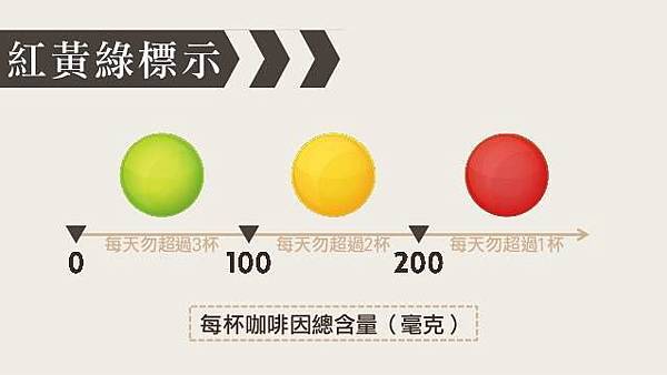 一杯 100 毫克以下為綠標、100~200 毫克為黃標、大於 200 毫克為紅標。